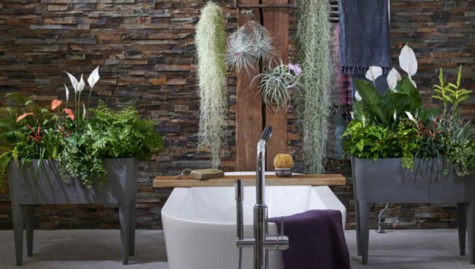 En met planten maak je een mini-spa van je badruimte. Want ook planten verminderen stress en geven je energie. En er zijn planten die weinig of geen water nodig hebben, want zij leven van vocht en damp. Planten die heel geschikt voor in de badkamer zijn de tilandsia, de klimvijg, het venushaar en de lepelplant.
