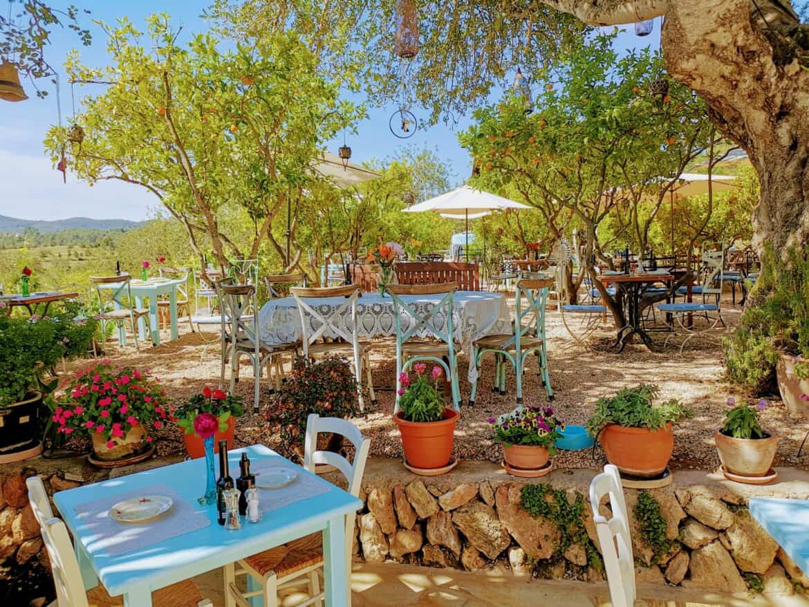 De ultieme Ibiza-look creëer je met een aantal kleine bijzettafels in verschillende hoogtes, maten en materialen.