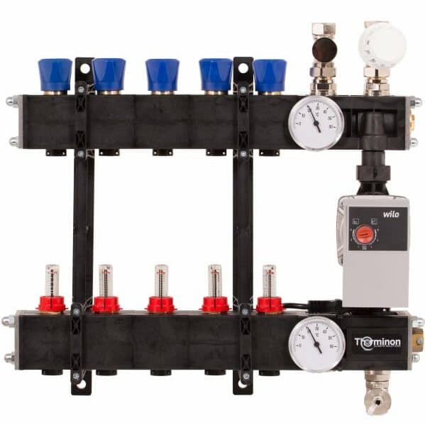 Bij CVKoopjes hebben zelfs de standaard verdelers eigenschappen die je normaal gesproken alleen vindt bij zogenaamde high-end verdelers. Het standaard model heeft een gescheiden aanvoer- en retourwater collector waardoor er geen warmteverlies kan plaats vinden door geleiding en straling. En is standaard voorzien van een vol-automatische en elektronische modulerende A-Label pomp. Zowel de aanvoer collector als de retour collector zijn uitgevoerd in dubbel afsluitbare groepen. Hierbij kan niet alleen de retour aansluiting per groep worden afgesloten, maar ook de aanvoer aansluiting van de groep. De aanvoer aansluitingen zijn tevens voorzien M30 aansluiting voor elektronische regeling (zone regeling) en industrie standaard koppelvlak (¾ euroconus).