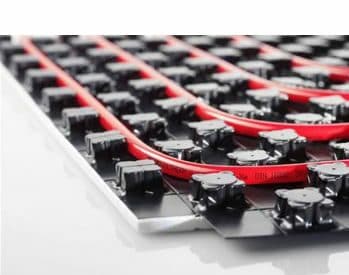 Je hebt vloerverwarming voor droogbouw en deze heeft een geringe opbouw zonder dat je een cement deklaag hoeft aan te brengen, dit wordt ook wel een zwevende afwerking genoemd. Het resultaat is een zeer dunne vloerverwarming maar wel met een hoge capaciteit, als gevolg van de slimme manier van energie afgifte. Dit wordt gemaximaliseerd door de slang te geleiden middels verzinkte warmtegeleidingselementen. Deze warmtegeleidingslamellen stralen de energie nog beter af naar de te verwarmen zone omdat de vloerverwarmingsbuizen geklemd door deze lamellen geleid worden.